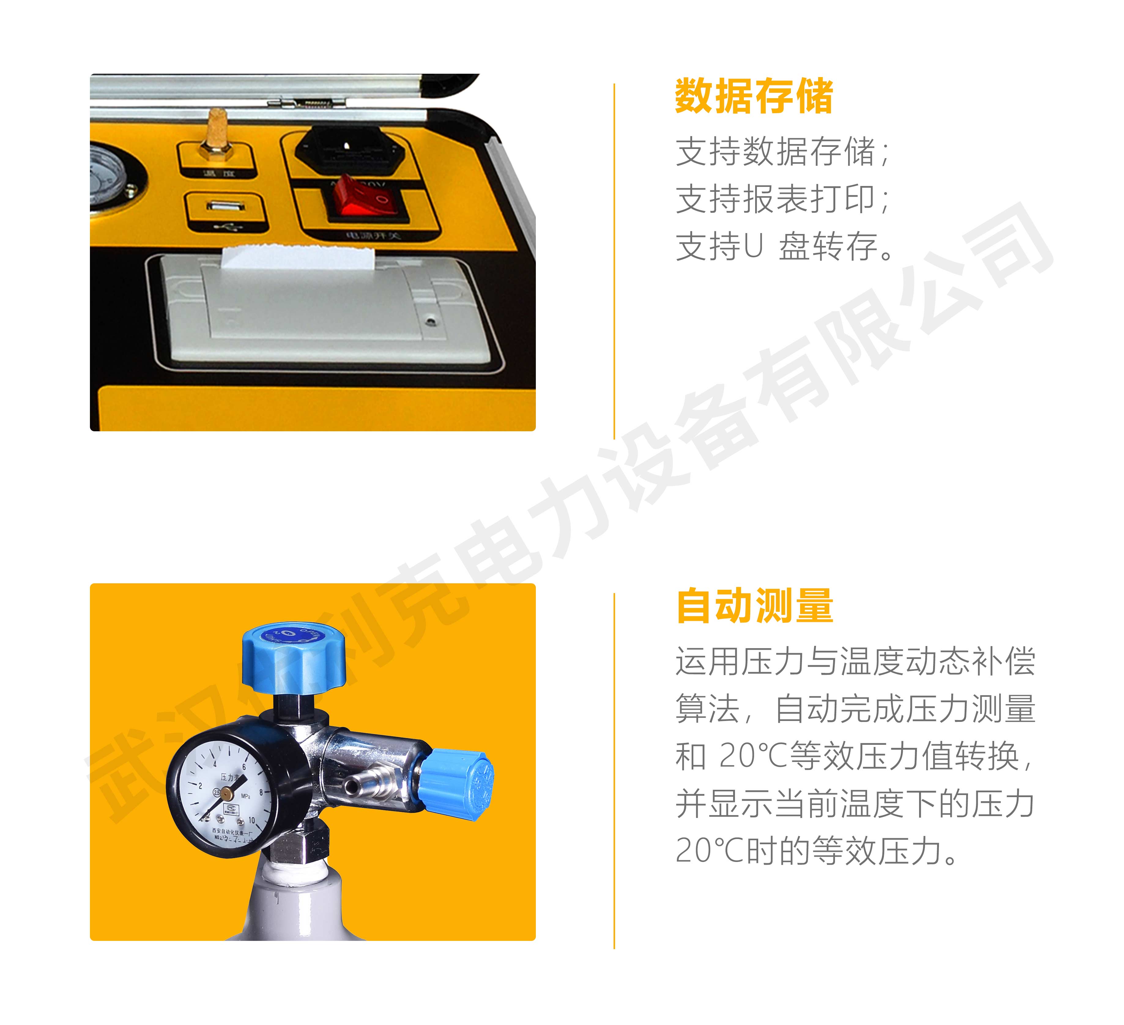2、高度智能化:校驗過程無需恒溫室,在任意有效溫度范圍內均可對 SF6 氣體密度繼電器、壓力表進行校驗。運用壓力與溫度動態補償算法,自動完成壓力測量和 20℃等效壓力值轉換,并顯示當前溫度下的壓力、20℃時的等效壓力,徹底解決 SF6 氣體密度繼電器現場校驗難的難題。