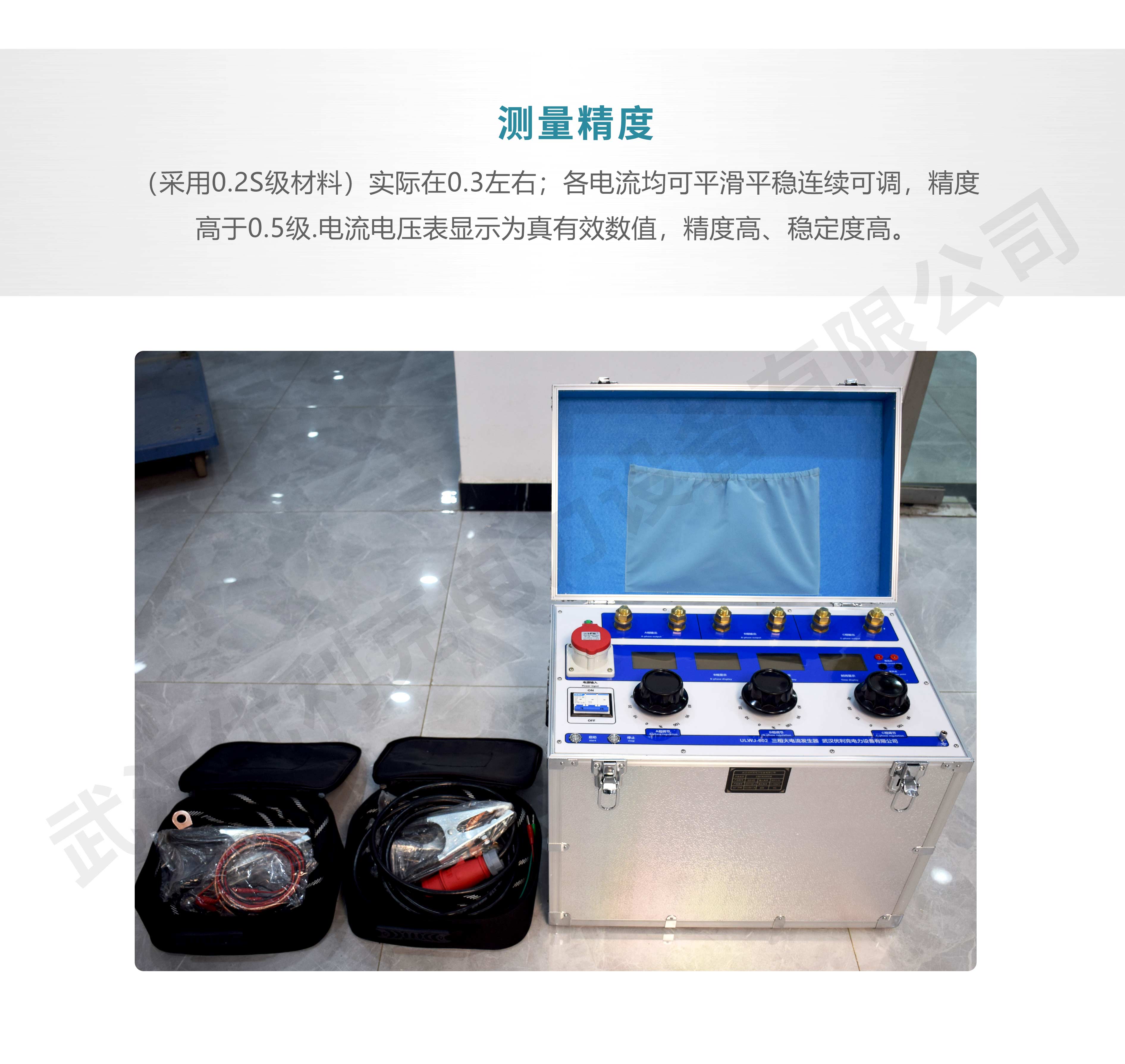 測量精度 (采用0.2S級材料)實際在0.3左右;各電流均可平滑平穩連續可調,精度高于0.5級.電流電壓表顯示為真有效數值,精度高、穩定度高。